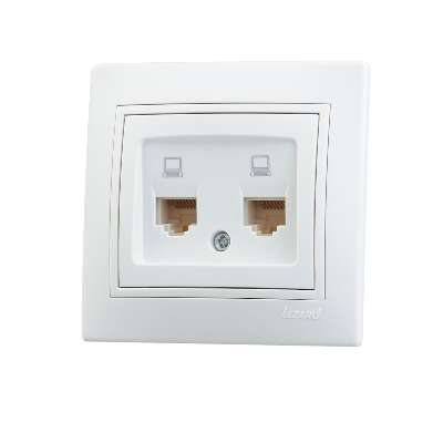 Розетка компьютерная двойная. Особенности заключаются в европейском дизайне. в повышенной безопасности негорючего поликарбонатного ПК-пластика. в более прочном и устойчивом к механическому воздействию покрытии. в простом монтаже и демонтаже.Напряжение,