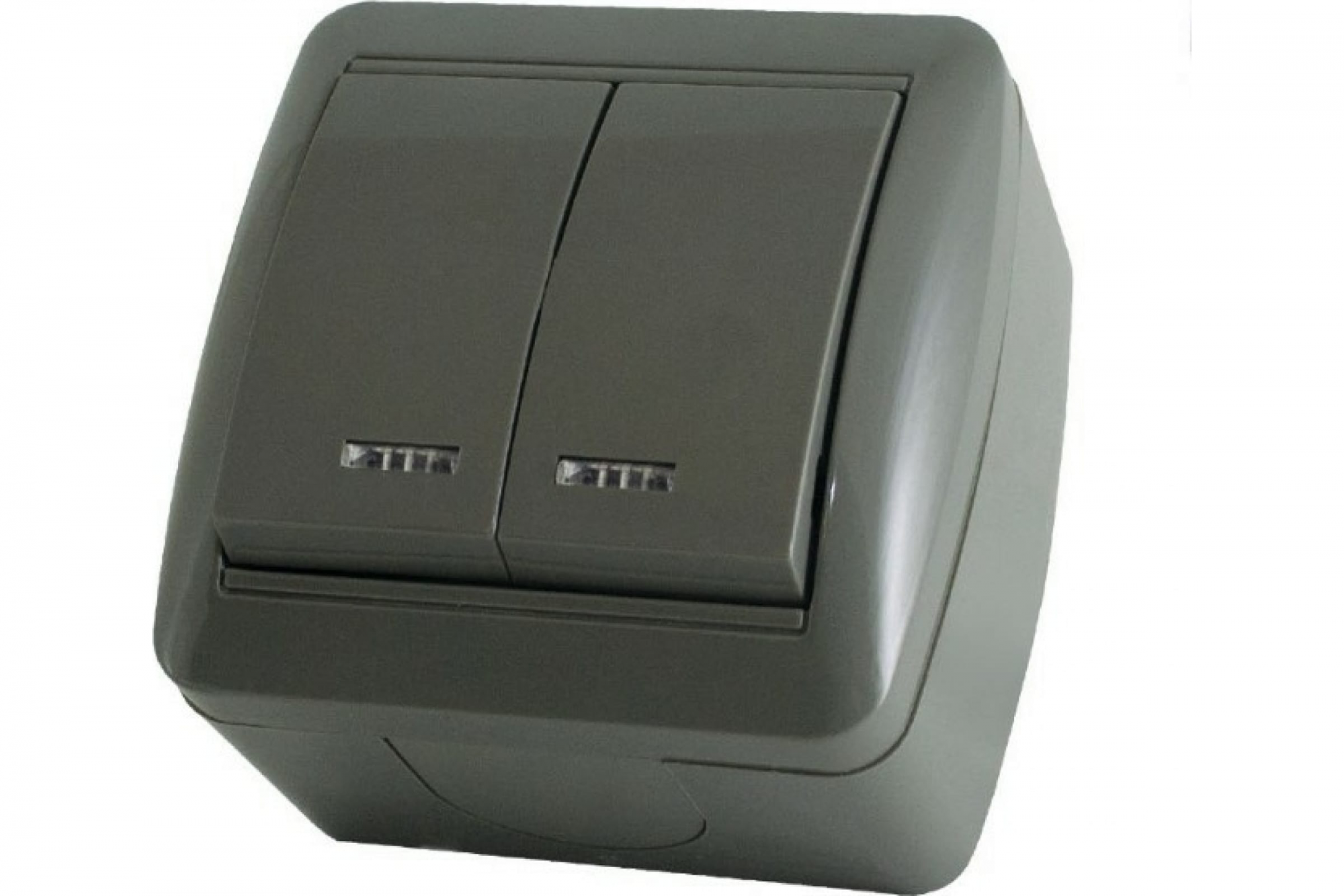Выключатель TDM Селигер Серый Выключатель 2-клавишный открытой установки с подсветкой IP44 10А SQ1818-0104 - это надежное и стильное решение для управления освещением и электроприборами в помещениях с повышенной влажностью. Он сочетает в себе функциональность, эстетику и надежность, делая вашу жизнь более комфортной и удобной.