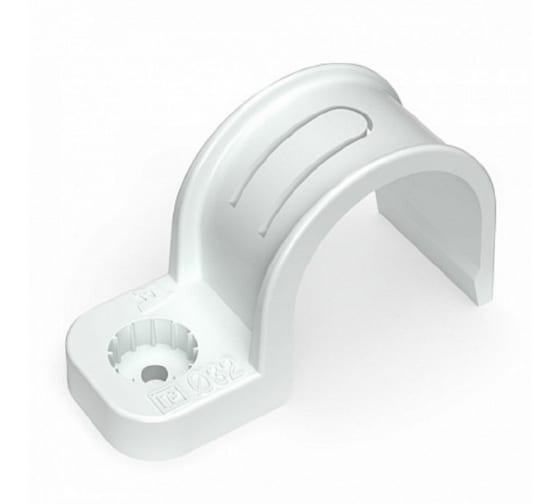 Пластиковая односторонняя крепеж-скоба для прямого монтажа Промрукав белая, в п/э, д 32, 25 шт PR13.0379 предназначена для монтажа проводки в гофрированных и гладких трубах, нагревательных труб системы "теплый пол" и прочих работ по прокладке инженерных сетей на горизонтальных и вертикальных поверхностях.Подходит как для прямого монтажа, так и для классического с применением дюбелей и саморезов. Благодаря пластичному язычку с выступом достигается сопротивление проскальзыванию гофрированных труб, дополнительная ступенька удерживает в скобе смонтированную трубу.