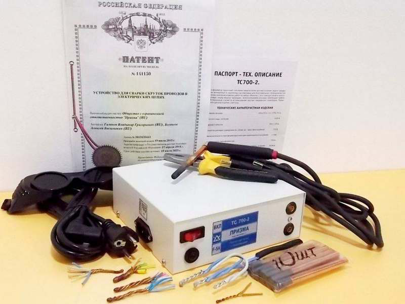 Компактный переносной аппарат для сварки скруток медных и алюминиевых(с использованием флюса) жил, общим сечением не более 24 кв.мм. Такой аппарат в первую очередь необходим для электриков, т.к. обеспечивает наилучшее соединение проводов в распределительных коробах, эл. щитах, эл. шкафах и др. п. (в комплект входит сам аппарат ТС 700-2, защитные очки, сумка для переноски, 10 электродов).