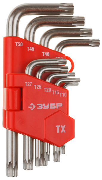 Набор ключей имбусовых TORX (звездочки), 9шт:T10,15,20,25,27,30,40,45,50, оксидированные, на кольце/