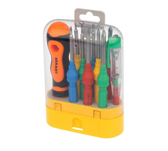 Набор отверток 10 предметов REXANT - это удобный и практичный набор инструментов для проведения различных работ по монтажу и ремонту. В наборе представлено 10 отверток различных размеров и типов, что позволяет эффективно выполнять разнообразные задачи. Каждая отвертка изготовлена из прочного и надежного материала, обеспечивая долгий срок службы. Эргономичные рукоятки обеспечивают удобный и комфортный захват, что делает работу с набором отверток максимально удобной. Набор отверток 10 предметов REXANT - незаменимый помощник для домашнего мастера или профессионального монтажника.