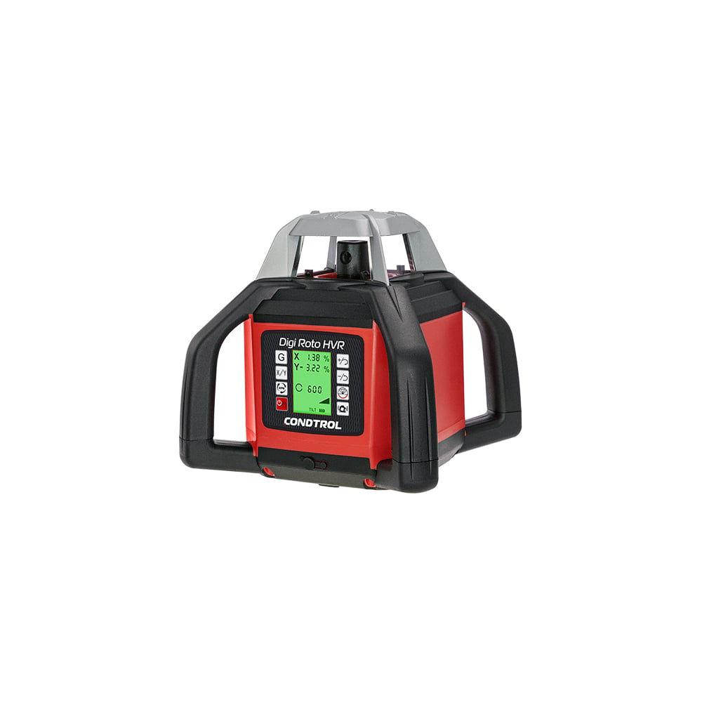 Ротационный лазерный нивелир Condtrol Digi Roto HVR, 600 метров 7-2-096 предназначен для высокоточной планировки и создания уклонов. Станет незаменимым помощником для специалистов, работающих в сфере дорожного строительства, домостроения, земляных работ, ландшафтного дизайна, в которых качество и сроки реализации проектов зависят от надежности и точности измерительного инструмента. Оснащен двусторонним ЖК-дисплеем, с помощью которого можно контролировать положение линий разметки с обеих сторон корпуса. Прибор автоматически самовыравнивается в горизонтальном и в вертикальном положении благодаря сервоприводу с высокочувствительными электронными сенсорами. Функция проецирования точки в зенит и надир поможет быстро перенести разметку снизу-вверх. Корпус надежно защищен от попадания внутрь влаги, пыли, грязи и мелких частиц. Благодаря высокому классу пылевлагозащиты (IP 67) нивелир идеально подходит для работы в суровых условиях строительной площадки. Помимо фирменного приемника X-act Roto в комплект поставки включены очки, которые позволяют лучше разглядеть линию разметки.