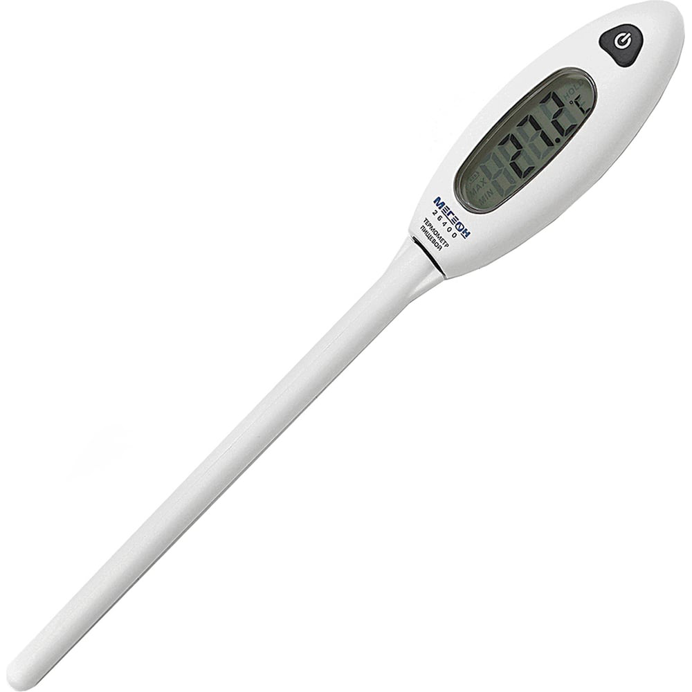 Контактный термометр (тип - игла), в основном используется для измерения температуры пищевых продуктов. Зонд термометра выполнен из нержавеющей стали высшего качества. При помощи термометра с зондом можно точно отслеживать температуру приготовления пищи (в духовке, на гриле, в воде). Термометр также применяют, в различных сферах деятельности (работа с отопительным и холодильным оборудованием, при обработке пластиков и резины). Может также приняться для работы с растениями - поможет узнать температуру у корневища. Простота эксплуатации достигается простому управлению одной кнопкой на панели. Помимо измерения текущих значений температуры предусмотрено удержание максимальных и минимальных показателей нагрева или охлаждения. Благодаря функции автоматического выключения увеличен срок службы батареи.