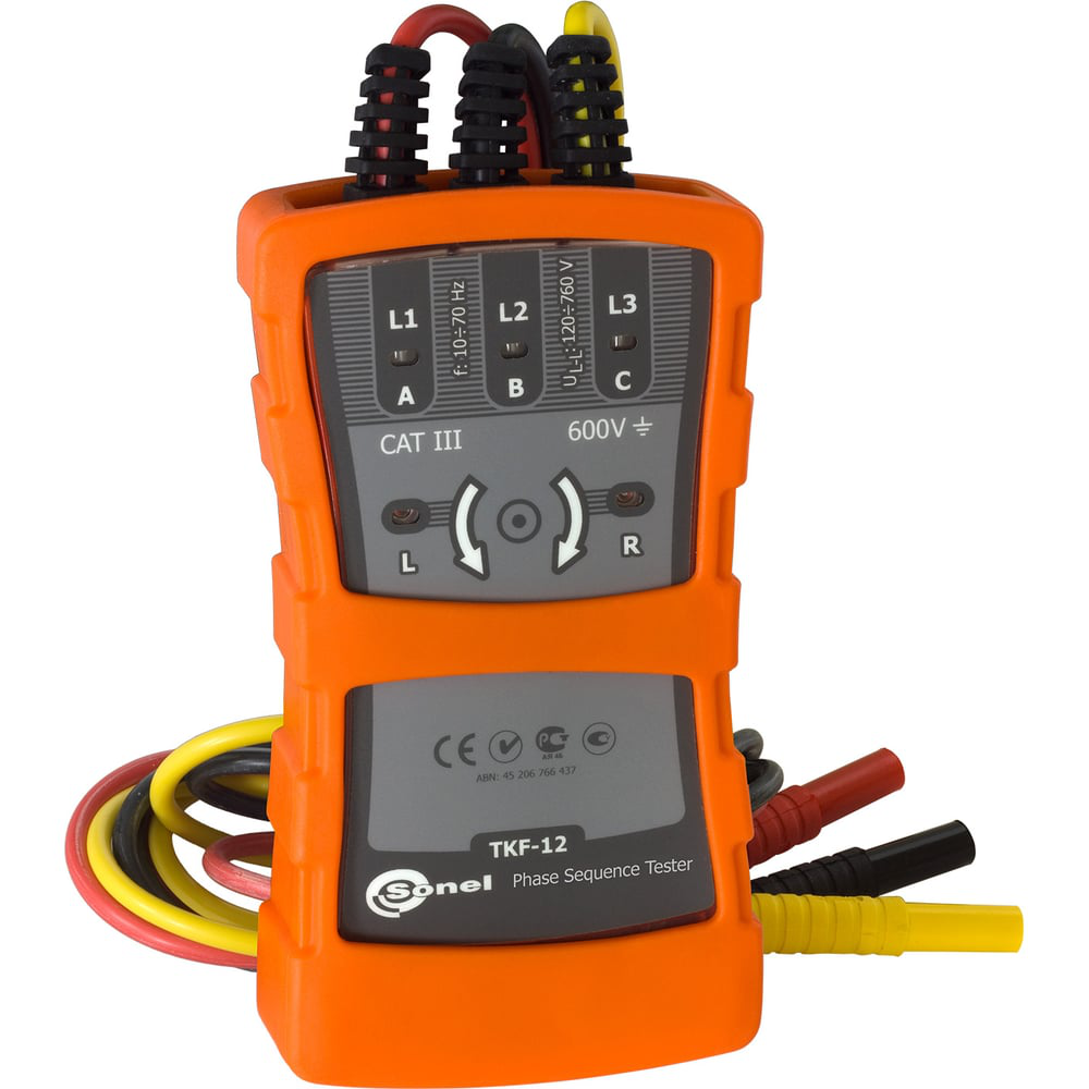Указатель правильности чередования фаз SONEL TKF-12 WMGBTKF12 - надежный и удобный прибор. Помогает определять наличие напряжения трехфазных установок в диапазоне от 100 В до 760 В, а также индикацию последовательности чередования фаз.Высококонтрастные светодиоды отображают все результатыУстройство имеет влаго- и ударозащищенный корпус, поэтому его можно использоватьв суровых условиях окружающей среды.Питание указателя осуществляется от исследуемой установки.Находясь длительное время под напряжением, прибор автоматически отключается.