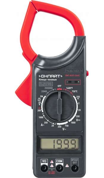 Токовые клещи ОНЛАЙТ OMT-Kt01-266C 82980 используются для проведения широкого спектра измерений электротехнических параметров сети и приборов при электромонтажных работах в быту и на производстве. Осуществляют измерение переменного тока без разрыва электромагнитной цепи. Функция DATA HOLD помогает зафиксировать данные на экране при работе в труднодоступных местах.