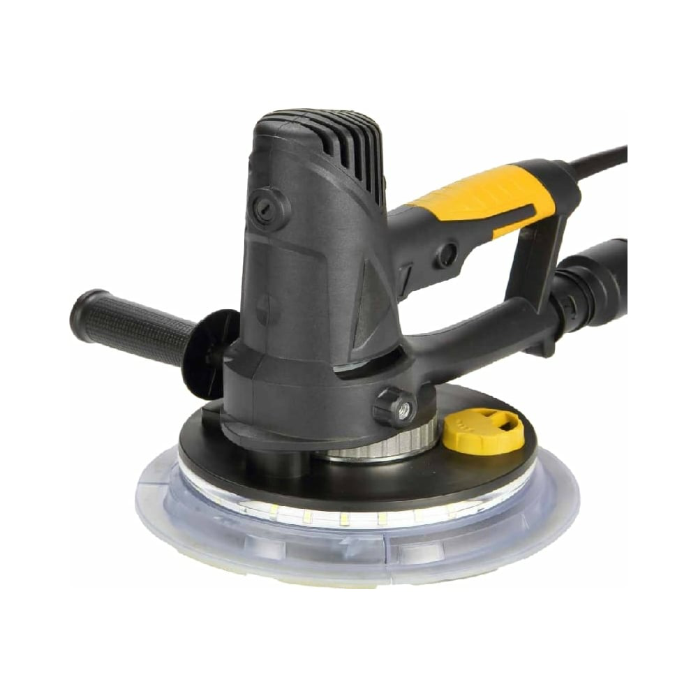 Шлифовальная машина АЯ-ТЕХ ATS180L 4603809587022 – компактная модель с укороченной рукояткой для настенных поверхностей. Подходит для работы с бетоном, гипсокартоном и аналогичными материалами. Система автоматического поглощения пыли защищает здоровье оператора. Для работы в неосвещенных помещениях модель оснащена светодиодной лентой . Основные характеристики данной модели Конструкция включает в себя 8 отверстий для всасывания пыли Присутствует стабилизатор шлифовального диска Для удобного шлифования углов можно снять защитный кожух Регулировка скоростей