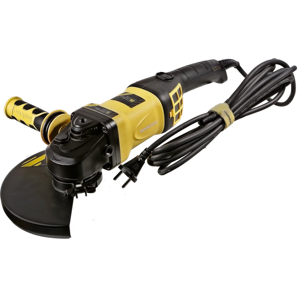 Угловая шлифовальная машина Hanskonner HAG28230B — маневренный и мощный электроинструмент для шлифования и зачистки поверхностей, а также резки металлов, кирпича, керамики или камня без использования воды. Данная модель имеет бесщеточный электродвигатель мощностью 2850 Вт и фирменные японские подшипники NSK, что повышает продуктивность и рабочий ресурс. Также, ресурс инструмента, подкреплен герметичным выключателем и функцией плавного пуска. Продуктивность инструмента повышается поддержанием постоянства скорости вращения под рабочей нагрузкой. Защитный кожух диска с мгновенной регулировкой положения, при помощи сопутного рычажка, дополняет легкость в обращении с ушм. Практичность модели подчеркнута виброгасящей боковой рукоятью. Безопасному ходу эксплуатации благоприятствует защита от повторного запуска. Морозостойкий резиновый сетевой кабель длинной 5 м, позволяет охватит рабочую зону площадью 78 м2.