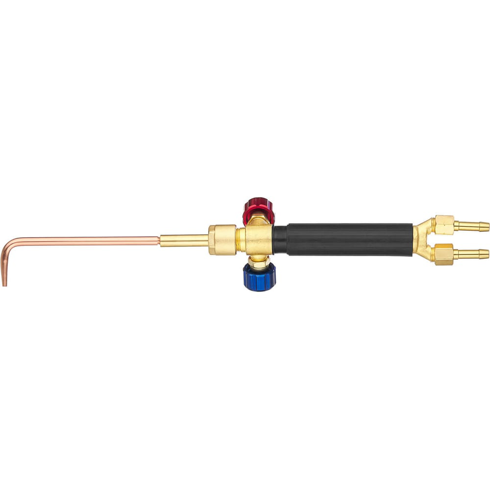 Горелка ацетиленовая инжекторная Г2А-4М-02 используется для сварки, пайки высокотемпературными припоями, нагрева, плавления и прочих видов газопламенной обработки металлов. Горелка обладает повышенной надежностью и безопасностью в работе. Выдерживает продолжительные нагрузки без охлаждения за счет большого теплоотвода. Горелка укомплектована медными цельнотянутыми наконечниками № 0А, 1А, 2А и 3А. Отличительная особенность медных цельнотянутых наконечников – это угол изгиба носика наконечника, который равен 90°. Благодаря этому горелку можно эксплуатировать в стеснённых условиях и в труднодоступных местах. Точная регулировка мощности пламени в пределах одного наконечника производится вентилями, ступенчатое изменение – сменой наконечников. Давление газа на входе и расход зависит от установленного наконечника. В руководстве по эксплуатации указаны ориентировочные данные. Запорные вентили горелки изготовлены из нержавеющей стали. На штоке вентилей установлен уплотнитель из фторопласта. Такая конструкция позволяет легко подтянуть сальниковую гайку, чтобы добиться необходимого плавного открытия вентилей.