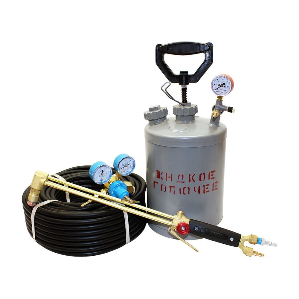 Комплект оборудования КЖГ-2-Р предназначен для ручной разделительной резки углеродистых и низколегированных сталей толщиной до 200 мм с использованием в качестве горючего керосина. Изделие имеет сертификат соответствия требованиям Технического регламента о безопасности машин и оборудования. В эксплуатационной документации указан орган, выдавший сертификат и срок действия сертификата. Комплект КЖГ-2-Р ОКП 36 4535 2304 изготавливается по ТУ 304-2016-3-93. Комплект КЖГ-2-Ризготавливается видов климатического исполнения У1 или Т1 по ГОСТ 15150, но для работы в интервале температур окружающей среды от минус 20°C до плюс 40°C. Внешний вид изделия может отличаться от представленного на фотографии