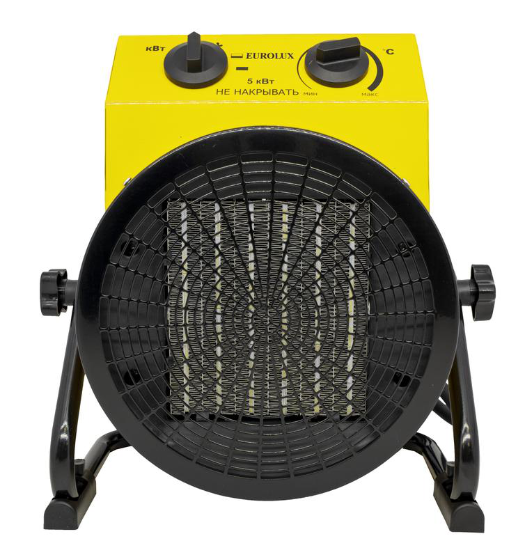 Модель электрической теплопушки Eurolux ТЭПК-EU-5000К мощностью 5000 Вт с керамическим нагревательным элементом станет оптимальным выбором для вентилирования и обогрева помещений любого назначения.Электрическая тепловая пушка является самым безопасным и экологически чистым видом среди всех обогревательных приборов. Модель оснащена пятиконтактной вилкой для подключения к сети. Наличие керамического нагревателя обеспечивает максимальную скорость нагрева воздуха. Теплопушка работает в нескольких режимах мощности: 40 Вт для вентиляции воздуха без изменения температуры, 2500 Вт и 5000 Вт для обогрева помещения. Путем вращения регулятора можно подобрать наиболее комфортный температурный режим. В конструкции предусмотрено наличие системы термозащиты. При перегреве тепловая пушка автоматически выключится. Круглый корпус с вынесенными в верхнюю часть регуляторами мощности и температуры зафиксирован на металлической подставке, которая не позволяет устройству касаться пола и перегреваться. Агрегат весит 5 кг, его можно легко отодвинуть в сторону или перенести в другое помещение.Мощная, надежная, экологичная, простая в управлении модель Eurolux ТЭПК-EU-5000К пригодится на производственном, строительном и любом другом объекте, где требуется быстрый и безопасный обогрев помещений.