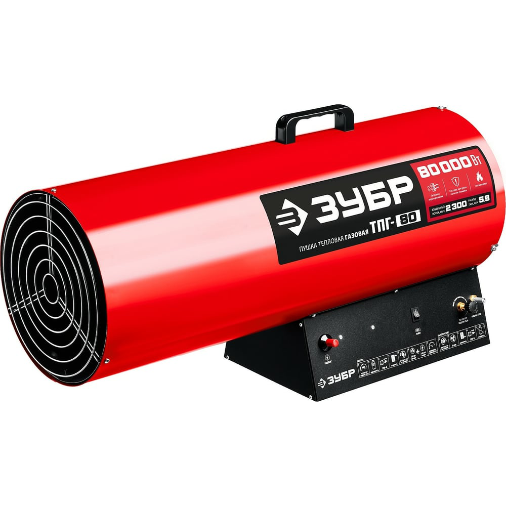 Газовая тепловая пушка ЗУБР 80 кВт ТПГ-80 - высокоэффективный газовый обогреватель, работающий на наиболее распространенном виде топлива. Оптимально подходит для использования на открытых и полузакрытых площадках для просушки и обогрева, размораживания траншей и аварийного прогрева помещений, а так же для монтажа натяжных потолков. Надежный поджиг дуги и эффективное горение гарантируют безотказную подачу тепла в любых условиях эксплуатации. Применяется для генерации горячего воздуха, который может быть использован для обогрева, сушки промышленных, складских, вспомогательных помещений и т. д.