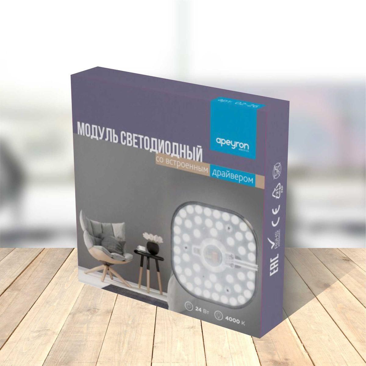 Расширенная гарантия на товар составляет 2 года. поставщик рекомендует использовать лампы накаливания с цоколем не указан для освещения площади не указана м2. Светодиодный модуль Apeyron 02-26 в современном стиле используется в интерьере не указан с установкой не указано.