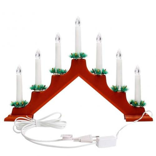 Эта горка имеет семь свечек, излучающих приятное теплое белое свечение. Корпус горки выполнен в красном цвете, что придает ей элегантности и насыщенности. Она выглядит очень стильно и привлекательно, станет яркой деталью вашего новогоднего декора.