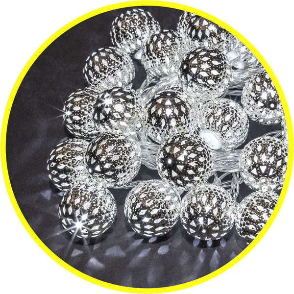 Гирлянда Navigator 14 042 NGF-D004-30CW-230-серебряные шарики (металл) тип гирлянды - фигурки серебряные шарики . материал шарика - металл. диаметр шарика -1,5 см.. цвет свечения - белый. 8 режимов свечения. общая длина - 3,9 м. длина провода до первого