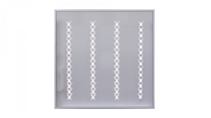 Габариты LED светильника составляют 595*595*38 мм, что позволяет устанавливать его в стандартные подвесные потолки или монтировать на поверхность. Стильный и минималистичный дизайн делает его универсальным и подходящим для любого офиса.