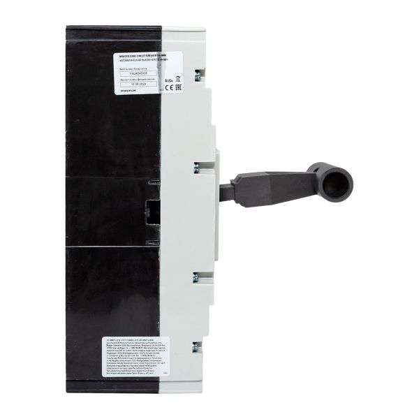 Выключатель ВА-99М выполнен в виде моноблока и состоит из основания и крышки с фальшпанелью, в которой имеется окно для рукоятки управления и толкатель кнопки «Тест» - проверки механизма отключения выключателя. Основание выполнено из термостойкой пластмассы, не поддерживающей горение и являющейся несущей конструкцией для присоединительных зажимов, неподвижных и подвижных контактов с системой дугогашения, механизма управления, блока защиты от сверхтоков. Крышка закрывает все подвижные элементы механизма управления и внутренние токоведущие части.
