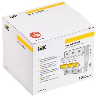 Автоматические выключатели ВА47-100МА предназначены для защиты распределительных и групповых цепей, аварийных систем безопасности, систем пожаротушения и вентиляции. Рекомендуются к применению в вводно-распределительных устройствах бытовых и промышленных электроустановок.