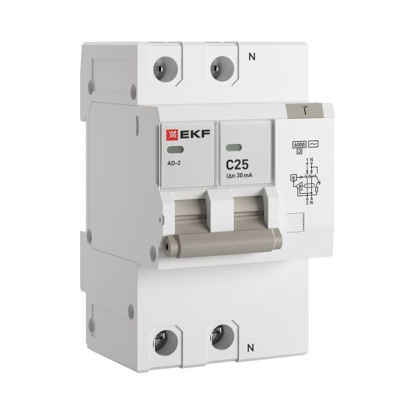 Дифференциальный автоматический выключатель АД-2(4) (S) EKF PROxima представляет собой аппарат, сочетающий функции автоматического выключателя с устройством защитного отключения. При обнаружении автоматическим выключателем в защищаемом участке сети тока утечки (повреждения) на землю или сверхтока (тока перегрузки или короткого замыкания) происходит срабатывание устройства, приводящее к отключению защищаемой сети. Особое отличие дифференциальных автоматов EKF – в наличии встроенного блока защиты от перенапряжения. АД-2 и АД-4 EKF PROxima выпускаются в стандартном и селективном (АД-2S, АД-4S) исполнениях.